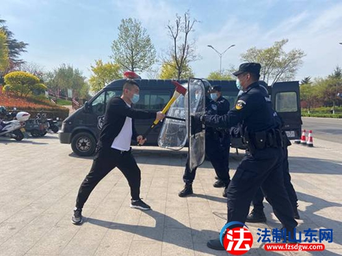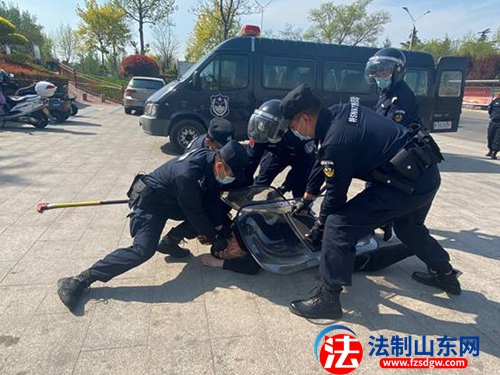 警情模拟城区发现一名疑似精神病患者手持砍刀,肆意攻击周边群众,接到警情后,大队警情指挥部立即通知附近PTU快反机动队赶往现场,紧急疏散群众,明确分工,用最短的时间将其制服。演练中,大队坚持以"第一时间反应、第一现场处置、最大限度减少伤亡"为目标,突出实战实用实效,注重团队协同作战,灵活运用警械,以最小作战单元对模拟警情进行快速处置,收到了良好的效果。