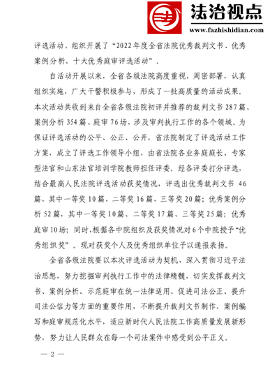 法治视点网4月27日讯:近日,山东省高级人民法院印发《关于2022年度全省法院优秀裁判文书、优秀案例分析、十大优秀庭审评选活动获奖情况的通报》,我院刑事审判庭法官助理杜爽强荣获“2022年度全省法院优秀案例分析评选活动”三等奖。