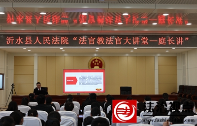 法治视点5月5日讯:4月26日下午,沂水法院在五楼会议室举行“法官教法官大讲堂——庭长讲”活动。院政治部主任孙红及全体青年干警参加。