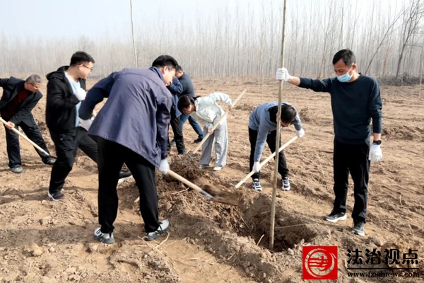 整个植树活动现场呈现出一片热火朝天的劳动景象。参加植树的机关干部通力协作,撸起袖子,移树入坑、填覆泥土、压实土壤,随着一道道工序的完成,一棵棵新栽的树苗迎风挺立,焕发出勃勃生机。