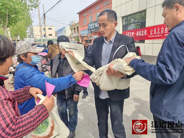 活动期间,工作人员利用阳信大集人流量大的特点,设立宣传咨询台,向过往群众发放野生动物保护手册、爱鸟护鸟倡议书等宣传材料500余份、手提袋100余个,并耐心讲解鸟类保护知识,呼吁群众不捕鸟、不食鸟、不破坏鸟类栖息地。同时,工作人员在镇村主干道、集市、林地周边悬挂宣传条幅,以醒目标语提醒群众保护鸟类、抵制非法捕猎行为。