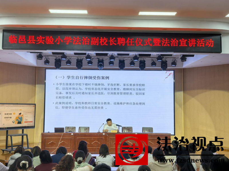 法治视点5月16日:为强化校园法治建设,提升教师依法履职能力,5月16日,临邑县司法局联合临邑县实验小学举行法治副校长聘任仪式暨“司法视角下教师尽职免责与家校冲突预防”专题培训。县司法局社区矫正工作股股长史文志、学校领导班子及全体班主任参加活动。