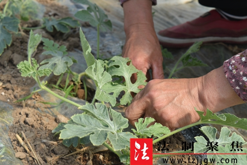 法制聚焦3月20日讯:春分时节,在郯城县杨集镇“美都”西瓜种植基地,1700个标准化白色塑料大棚整齐排列,在阳光的照射下甚是壮观。大棚内,西瓜苗新鲜细嫩,不少黄花、小果点缀其中,长势喜人。瓜农们正细心地翻看着藤蔓,整枝打芽,为西瓜创造更好的生长条件,确保西瓜如期上市销售。“通过考察,了解到与我们邳州毗邻的郯城县杨集镇一些地块非常适合西瓜的种植,加上西瓜生长周期相对短一些,收益也快,今年就跟杨集镇金土地服务有限公司与进行合作,建设了1700个标准化西瓜大棚,种植了1000亩‘美都’西瓜,‘五一’期间西瓜可成熟上市,预计亩产量可达到8000斤,按照现在的市场行情亩效益3万多元很有把握!”有着22年西瓜种经验的江苏邳州西瓜种植大户李向成谈及跨省到郯城县杨集镇种植西瓜的初衷,脸上溢满了幸福的笑容。